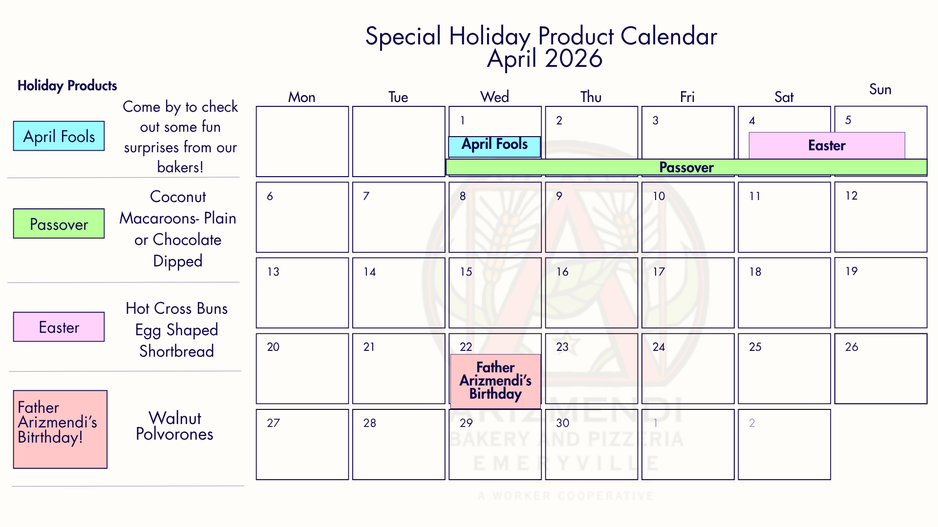 Holiday Calendar April 2026